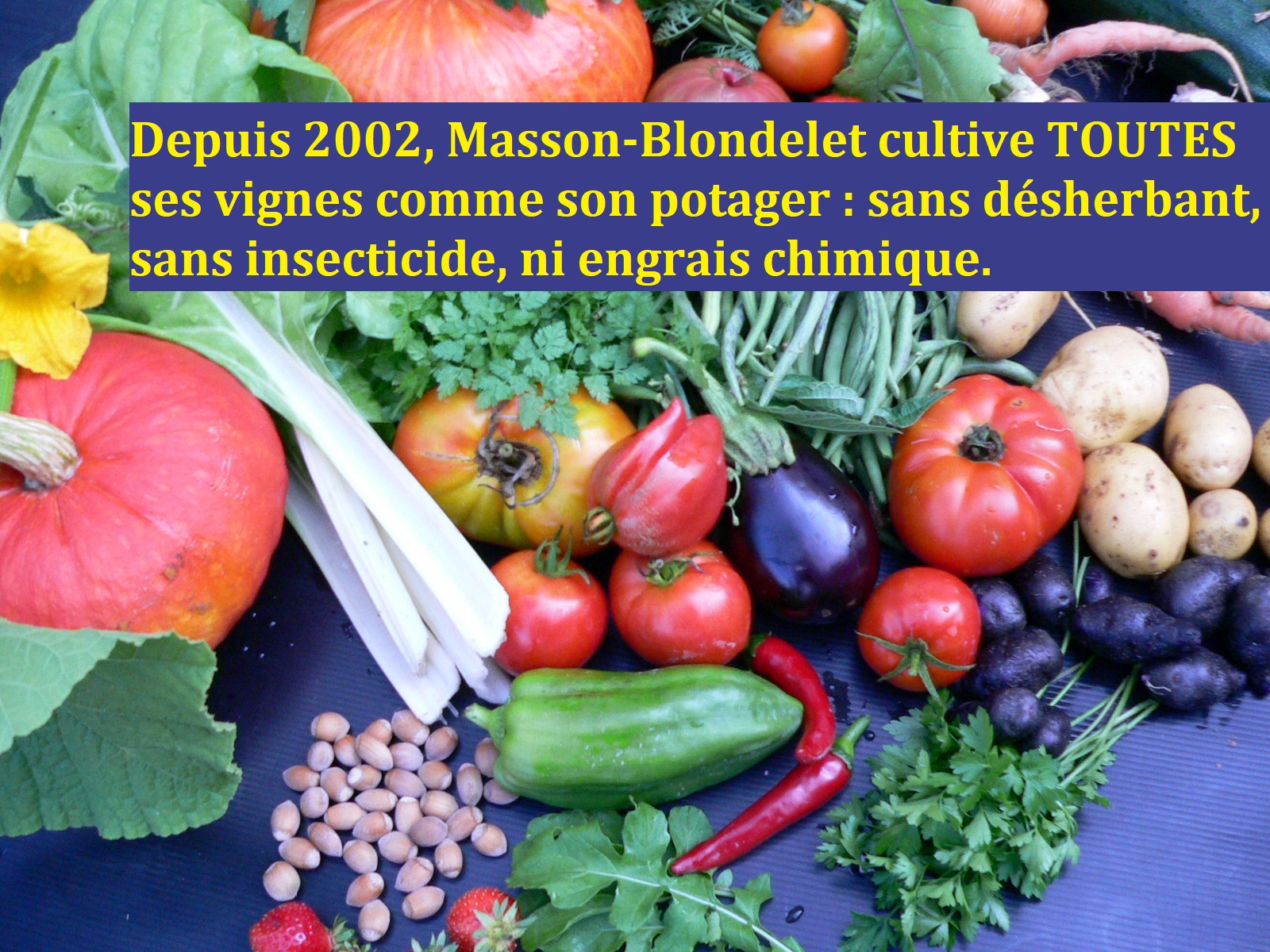 Masson-Blondelet cultive toutes ses vignes comme son potager : sans engrais chimique depuis 40 ans et sans aucun désherbant, ni insecticide depuis 2002, sur la totalité de nos vignes. Voyez plutôt…